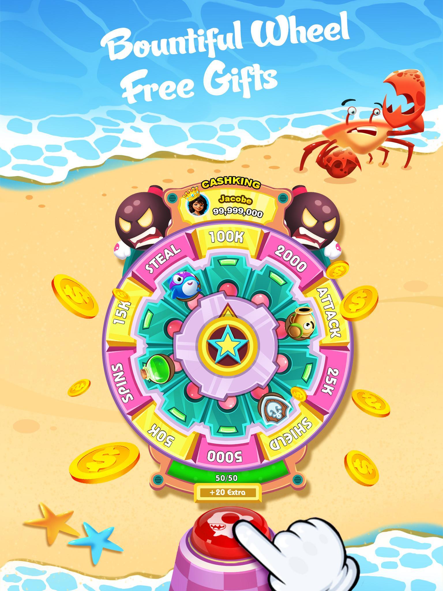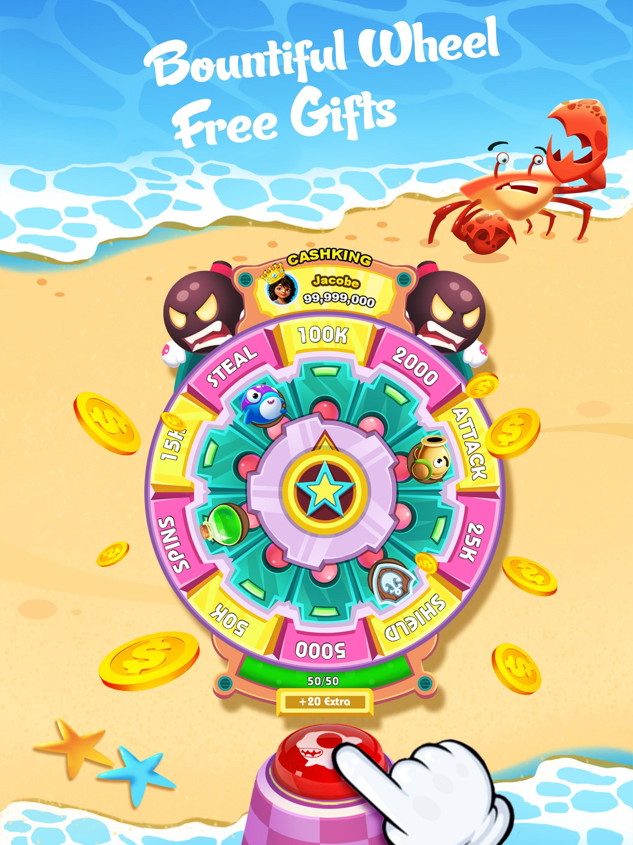 Spin your wheel to gain pirate treasure, but keep an eye out for enemy revenge attacks.