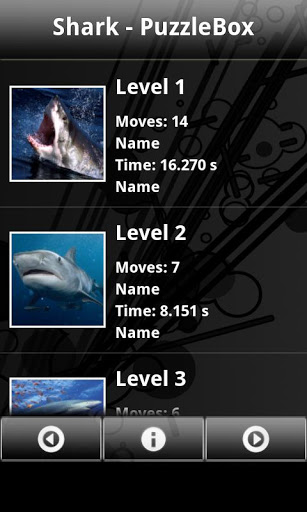 Shark PuzzleBox is a jigsaw puzzle games.Features: Move the pieces to the right place to recreate the puzzle. The more you advance the harder the puzzle gets. Move a set of pieces instead of single pieces to reduce your move count and time. Save solved puzzles to the SDCard, view them with your gallery app, set them as wallpaper or share them via email, twitter, facebook ... Personal records for every puzzle level. Hint system to help you with the puzzle. Create your own puzzle game with images on your SDCard.