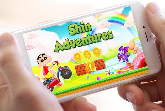 In this chan world of kasukabe city, our shin boy has to ride his super bike while collecting all the crayon candy and coins to hit the top 1 highscore in japan.