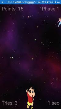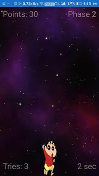 Shinchan Space Run is a space shuttle game you can go to Moon via this space rocket .This game is very interesting game over come all the obstacles in the space and go to near Moon. This is the first version of this game.