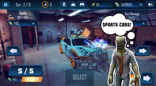 Equip the car with a deadly, modern weapon that will shoot zombies at a distance, so as not to give a chance to get closer to your race car.
