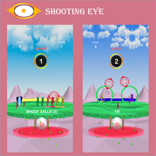 Shooting Eye game has a number of target eye's to be cleared, so every level can be cleared with a given balls hitting the target eye's. The target eye's are in different formations which increases the complexity when moving from one level to other.