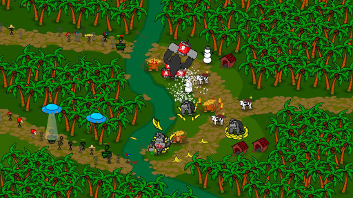 Fight off waves of groupies through epic battles of bananas, pitchforks, and the occasional UFO.