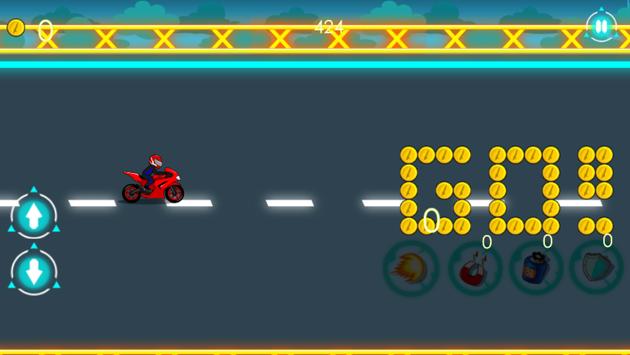 and challenge your limit. This the ultimate racing show game! stunt your bike, drag your motorcycle. The neon city light wait for you to conquer the worldof neon light!!!