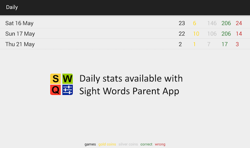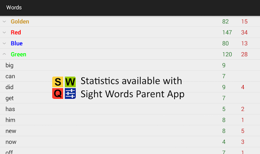 Sight Words quiz plays the sound of a word the player then has to identify in a multiple choice list.
