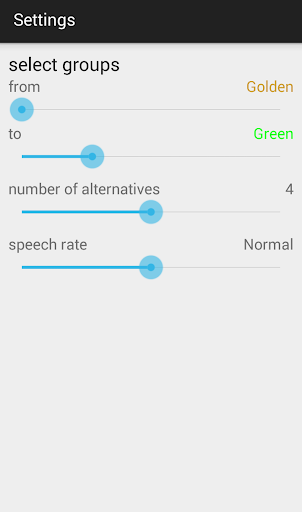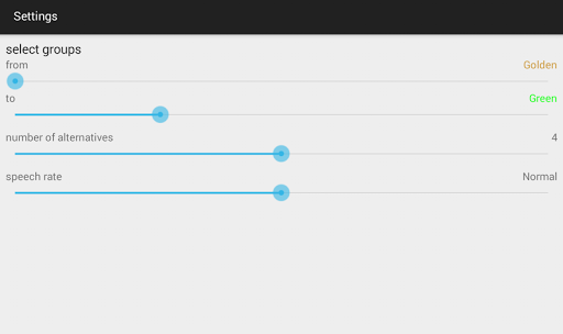 Difficulty level can be changed by selecting the word lists to practice and the number of words in multiple choice list.