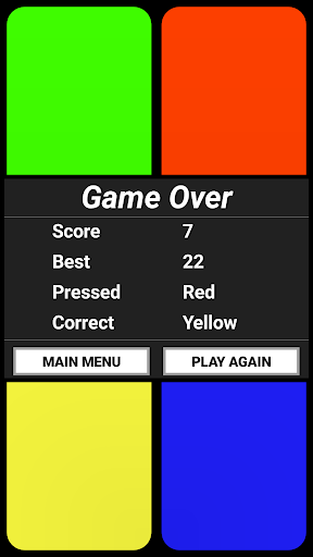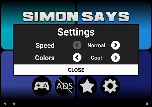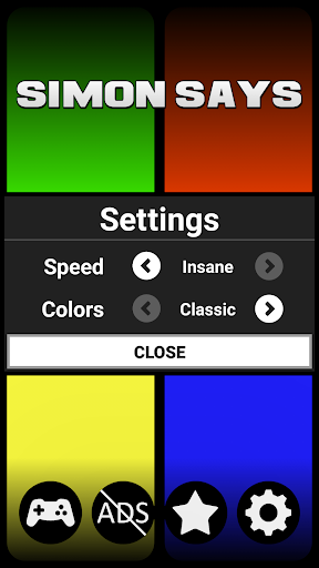 The best version of the classic four color memory game, Simon Says, from the 80s. A simple yet fun memory game of colors and tunes. Boost your brain power with this visual, auditory, and kinetic exercise! Red, Blue, Yellow, Green, plus extra color sets to choose from as well as a range of speed settings. Try upping the speed to Insane for a terrifying challenge.