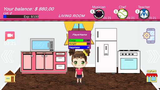 you take care of your doll, buy furniture, feel hungry and sleepy. Just won't forget to make her happy huh;)