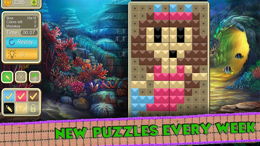 Nonograms, also known as Hanjie, Picross or Griddlers, are picture logic puzzles in which cells in a grid must be colored or left blank according to numbers at the side of the grid to reveal a hidden picture.