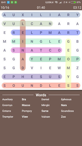 If you are looking for the trendiest word search game, Studio Code Search Puzzle is a game for you! You will enjoy a fun challenge when you identify hidden words and then swipe up, down, left, right or diagonally to mark them. This is a fun way to hone your vocabulary, spelling and puzzle skills. This game has 3 levels of difficulty from easy to hard, you can choose it freely. Need more challenges? Try Flash mode and Marathon mode and enjoy time pressure.