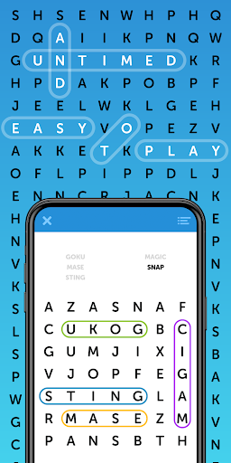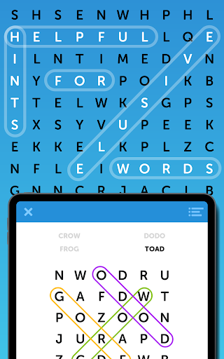 Welcome to Simple Word Search, a game that means what it says! The object of this classic free word game is the same thing you learned as a kid. You are given a word bank filled with the words that are hidden inside a grid of scrambled letters. It’s your job to seek and find all the words and highlight them in order to solve each word puzzle. Once you’ve searched and found a word, highlight the letters with your finger going either front, backwards, or even up and down! Keep hunting for the words from the list in the puzzle until you find them all.