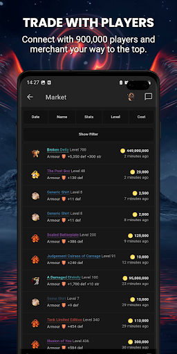 Traverse the world with strange, funny, serious, and downright ridiculous adventure texts with every step that you take. Duel other players, find legendary loot, team up and attack world bosses, join a guild, perform quests, become a market trader, converse with the community, become a hitman, and much much more! The choices are endless!