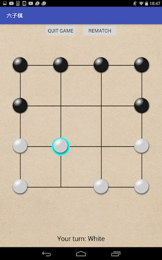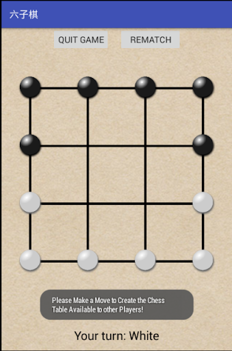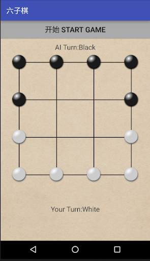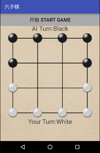 Six Pieces Chess is a two players board chess game which is popular in countryside of China. The board consists of 4x4 grid and each player has six pieces at the initial stage. One side chooses white pieces and the other player chooses black pieces.
