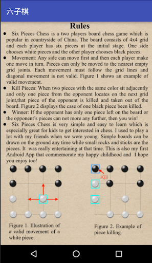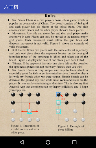Six Pieces Chess is very simple and easy to learn which is especially great for kids to get interested in chess. I used to play a lot with my friends when we were young. Simple boards can be drawn on the ground any time while small rocks and sticks are the pieces. It