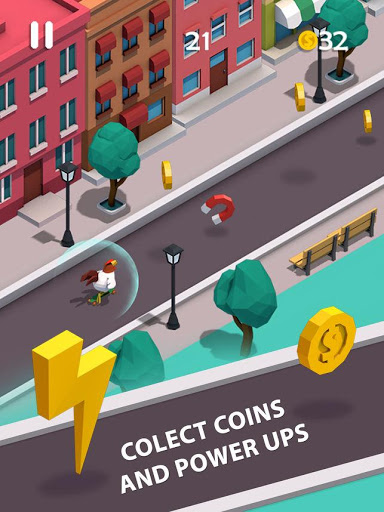 jump over or slide under oncoming traffic and obstacles on the road, collect coins to unlock fun unique characters.