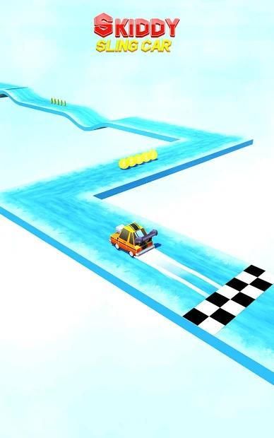 started and there is slippy road.Your car will skid all over the place on tap turn right to left.Tap to rotate car in this skiddy sling car kiddy.There