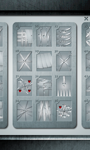 Slice HD is a sinister puzzle game for your Android device. The goal of the game is to clear layers of very sharp blades to push the red button. Push all the buttons in order and you win. While trying to open the puzzle you must not touch the sharp edges of the blades or you will get SLICED. When this happens, blood spills from your finger(s) onto the glass and the puzzle will reset. The blades only move in specific patterns that you must intuit by touch. Often, you must use multiple fingers to hold blades open while you manipulate other blades with other fingers. This game is really about trying to figure out the hidden behaviours of the blades and moving the blades out of the way, carefully.