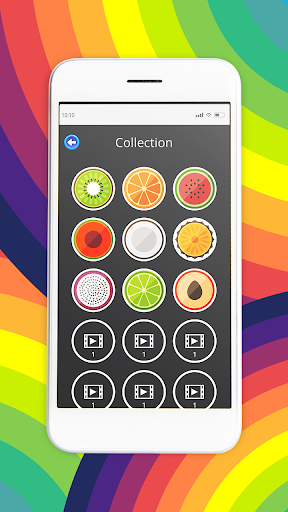 Fruit pieces will appear in the middle of the tap on one of the outer circles to place the fruit pieces and put them together into a complete fruit cut pattern.