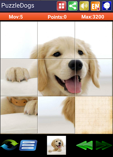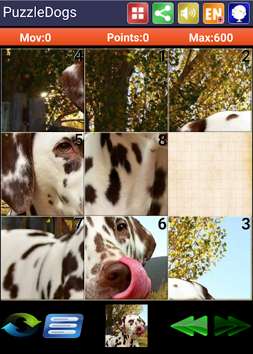 Sliding puzzle tender wonderful images of dogs and puppies of all breeds, such as Dalmatians, rottweiler, german shepherd, etc ...