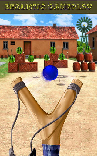 The gameplay has different modes with attractive game scenarios. First one is arcade mode. In this shooting mode, you will face different challenging levels. Each and every level become more and more challenging and addictive. It will test your real slingshot skills. Break all bottles and smash the watermelons to get best rewards. Challenge your friends over the achievements and compare your challenging levels rewards with them.