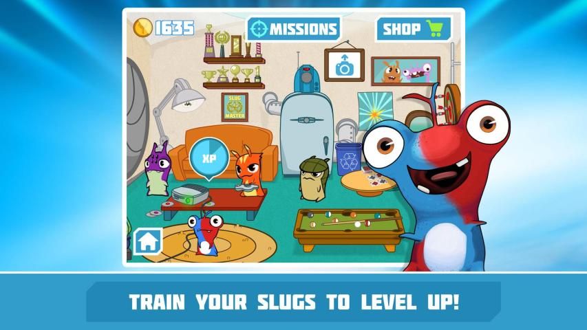 -Send leveled up slugs on Missions to bring back rare prizes and unlock new rooms & slugs!