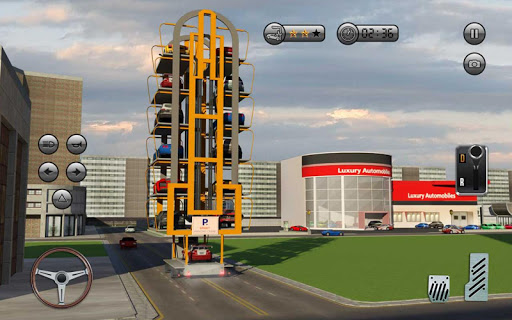 This futuristic vehicle can be placed next to skyscrapers, shopping malls and plaza in business district of NY city to resolve extreme traffic problems. Multi-Level crane consumes space of two automobile parking lots. 13 cars can be parked at one time by rotating parking spots using lever. Be an expert sports car driver as you have to transport expensive vintage cars to showrooms around town. Tired of playing classic multi storey parking simulators? Here’s a unique blend of car parking mania games and cargo truck simulator. Complete fast paced extreme sedan driving missions in this parking frenzy. Multi story car parking module is easy to operate and a great solution to big city traffic problem outside shopping malls, restaurants or school.