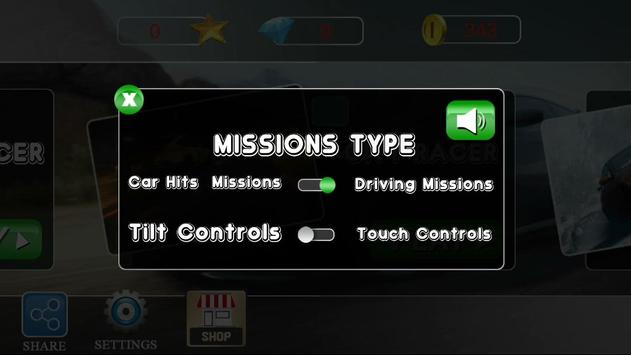 Select two different mission types in the settings menu and choose weather you want to play smash hit cars type mission or check point missions.