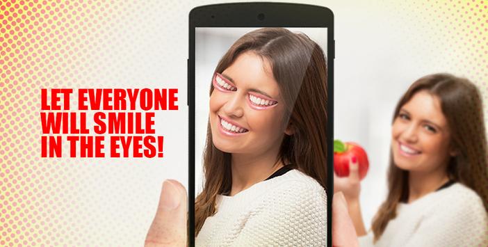 Smile in the eyes - this is a joke with the camera and your face! There are expressions - the smile in his eyes, smiling eyes. Now you can see how it is possible for real. Your smile will appear instead of eyes! Just take a photo - and you will smile eyes. Share this unusual photo to all your friends on social networks. No wonder they say, from the smile will brighten all! How to sing many artists - Smile! Like Lily Allen