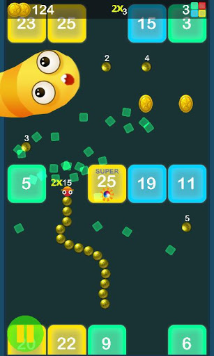 Hold down the screen, slide the snake around and break all the bricks easily!
