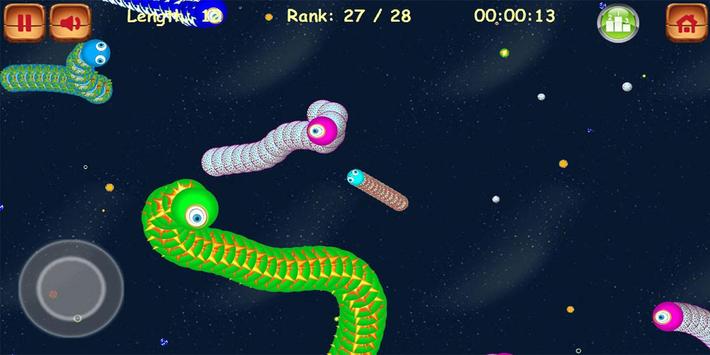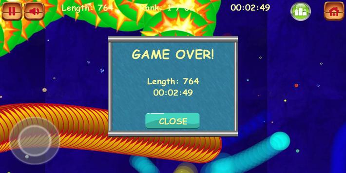 This is a game about the dexterity of running a worm that every time he has to eat food in front of him, the more he eats bigger and longer his body, so be careful to run it.