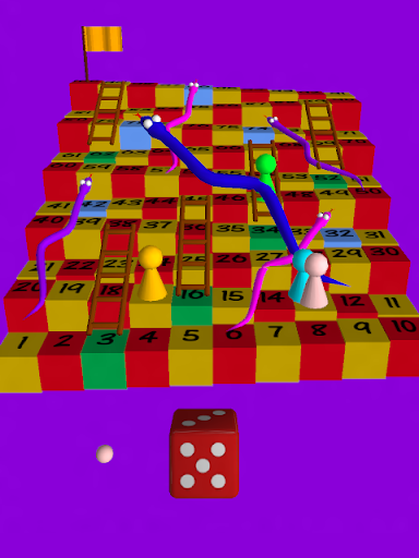 You can move the board around to look at it from different angles. This fantastic 3D board has 3D snakes and ladders on it. It makes much more sense than a flat board!