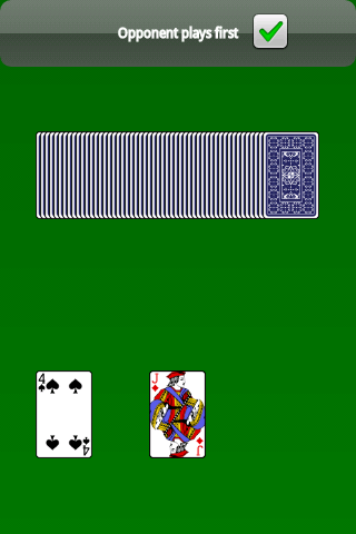 Snap is a card game for two players. Play against the computer and try to win more points. Rules are simple. After the deck is shuffled, the two players receive 6 cards each. Another 4 cards are thrown at the table. The players take turns in throwing cards. Throw a card with the same number with the card at the top of the pile and you win all the cards at the table. Also a Jack, which is a special card, always wins all the cards down. If there is only one card down at the table and a player throws a card with the same number, then a "snap" is achieved. A snap is worth 10 points. After all 6 cards of the first round are played, the two players receive another 6 cards. This is repeated a total of 4 times, until all cards are played. If, when all the cards are played there are still left cards at the table, the player who last achieved a winning deal collects them all. When the game is finished, the players count the points they have won. The player, who has collected more points, wins.