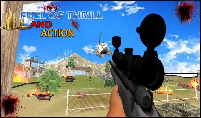 This free fighting game makes you crazy in shooting adventures at the frontier where you are alone with your sniper assassin skills. You have to complete all the dangerous and challenging missions within limited time constrain to win this dangerous war against your enemies.If enemies cross border you have to shoot them, helicopters are also patrolling, you also get a chance to shoot the helicopter enemies and tanks. Just be consistent and never give up at any level. Every level of the game is full of thrill and shooting excitement for action adapters. Make the best use of professional sniper shooting rifle while playing a role of best terminator shooter in a dangerous war. Show your courage and skills to save your land and innocent creatures from the enemies at your frontiers.