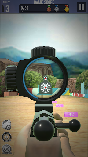 The real sniper rifles to shoot the bulls eye on the target in shooting range which is gold feature among the long range sniper shooting game.