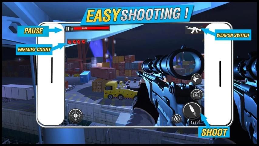 Unlock and enjoy plenty of weapons, upgrade them with evolutions in arsenals, Sniper Rifles, assaults rifle, shotguns, and pistols and many weapons are available now its all up to you and strategies of your elite commando that either you want to select a sniper or assault mp5 or hunting sniper rifle! Upgrade range, zoom, scope and stability for better shooting. Be the true rifle hero of this Sniper Strike: Free Shooting Game-FPS 3D