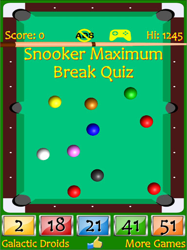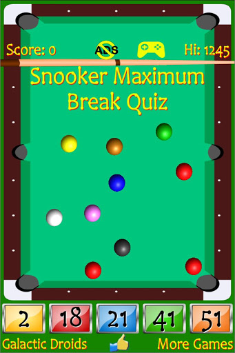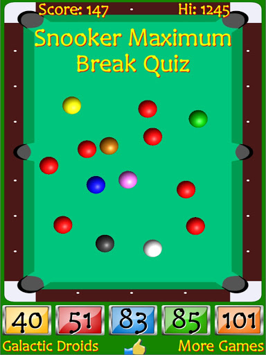 Description of Snooker Maximum Break Quiz