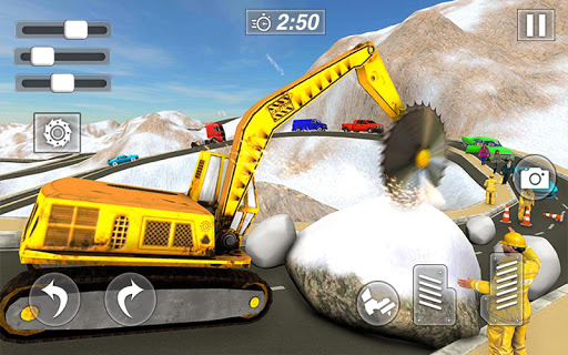 Become construction crane operator and learn how to clear demolished areas and clear road blocks to rescue people in Snow Mountains. Heavy land sliding cause havoc and people got stuck in tunnel or highway downhill highway roads. Drive big machines like stone cutter and drilling crane to help people with your pro driving skills. Operate modern day snow excavator machine under crisis situation to save the people by clearing the frozen ice blocks.