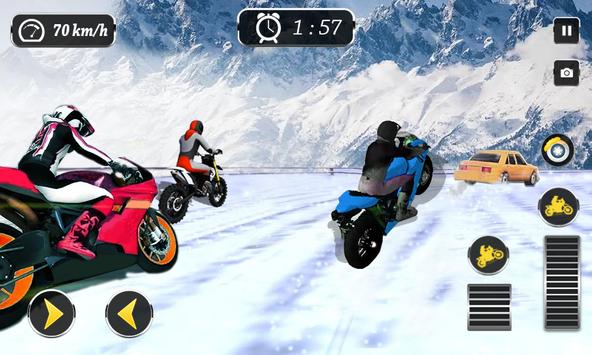 Offroad bike racing in which you can choose many unleash beast bikes for racing in the snow. Here you can show some stunt simulator on sky high, skyscraper of the city, exhibit your amazing skill of riding, stunts as a real stuntmen on the top of mountain in this stunt bike. Opponents are waiting for you show them you are a real champion of this motocross racing game 2020. It’s totally freestyle stunt bike racing game where you complete your rounds and go forward, earn some coins, do super bike stunts as we see in superbike stunt simulator rooftop games and moto games. Be a daredevil rider to beat other stuntman for winning the coins. Avoid all the obstacles of the highway while performing your crazy snow stunts, jumps in your off road motorbike and enjoy all top stunts in this Snow Mountain Bike Racer - Motocross Racing 2020.