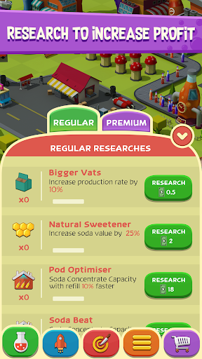 Tap fast enough to produce a cluster of idle soda types ready out for fulfil customers' need for the most demanded soda. Once the Soda are ready, delivery trucks will take away the ready soda bottles and your income will double, triple and quadruple in your idle factory. Soda tycoon is a free game, and you will surely found it the best game, because of heavy addiction.