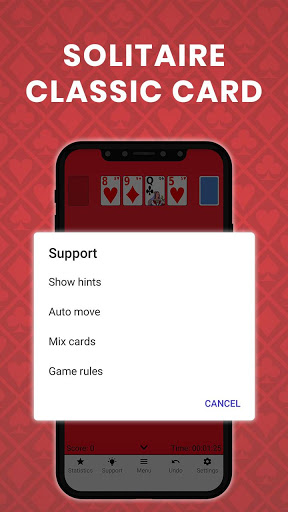 This game has a undo function to take back up to 20 card movements. A hint function shows you up to 3 possible card movements at once.