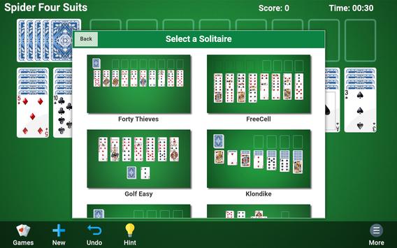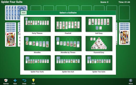 Solitaire Collection allows you to play 9 challenging Solitaire Games: FreeCell, Klondike, Klondike by Threes, Forty Thieves, Golf, Pyramid, Spider Four Suits, Spider One Suit, Spider Two Suits.