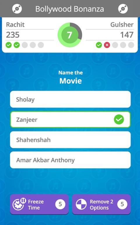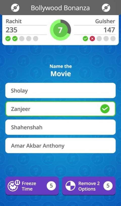 Song Quest is the ultimate music trivia game for every music lover. Begin your quest into the musical world by exploring songs from different decades, languages and parts of the world. Unlock new playlists as you make progress, while playing with friends and competing against Questers from all across the globe. Give yourself a cool avatar from the filmy world and use power-ups to your advantage against fierce competitors.