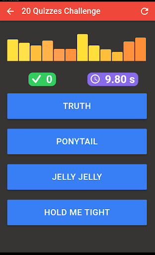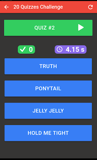 - First Mode: Contains 20 quizzes. Not only the number of the correct answers, but also the game play time is recorded.