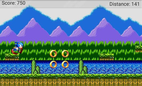 Run with the sonic super power and jump over obstacles and enemies run away from them as much as you can