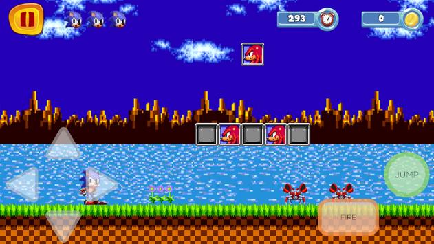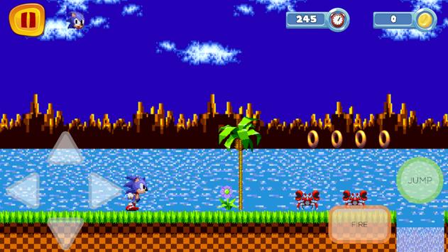 Run with the sonic super power and jump over obstacles and enemies run away from them as much as you can
