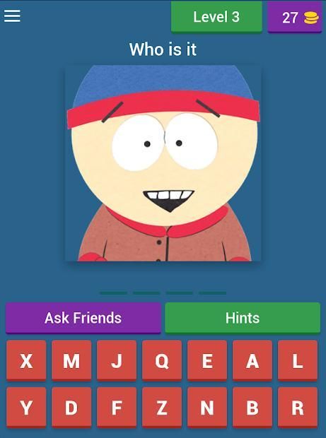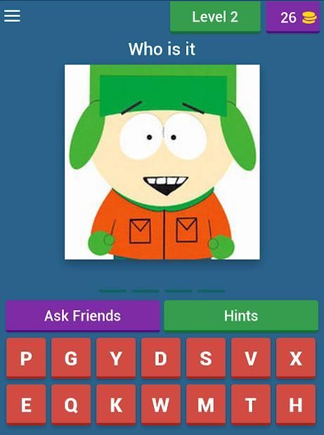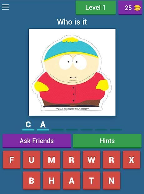 South parks Quiz game in which you have to guess yhe characters cartoon South Park.