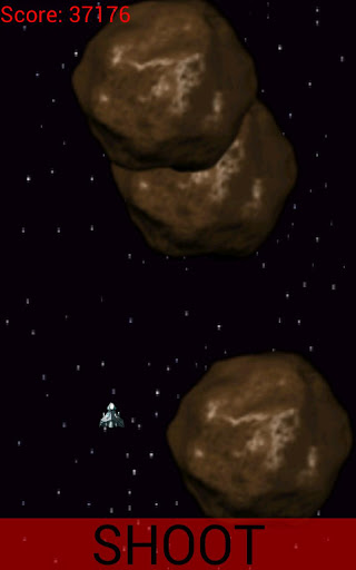 Come and enjoy a challenging game where you must navigate your spaceship through asteroids. You can shoot the asteroids, but if you collide with them, your spaceship explodes compete with your friends to try to get a high score. Have funUpdate Log:1.2: Bigger shoot button added1.1: Scrolling star space background added1.0: Release.tags Space, Adventures, Adventure, Asteroid, Asteroids, Shooting, Shoot, Action, Spaceship