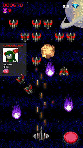 The game has been designed in the old retro style. Hordes of aliens, who want to destroy Earth, are approaching from deep space. Go on board your spacecraft and fire at the enemy. There are six planets of the solar system, which have been taken over by the aliens. Watch out as the enemy’s extremely dangerous. Collect crystals and upgrade your spacecraft by purchasing better weapons. During the game, you’ll encounter additional surprises and mini games such as shooting at enemies and saving your spacecraft, or arranging memory cards. Steer clear of asteroids, fight with bosses and perhaps you’ll be able to find an ancient spacecraft in this alien shooter game.
