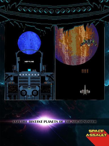 Space Assault is a solid and striking space game filled with terror. Flying a spacecraft is not easy; it’ll require long hours of practice to get to the extremely dangerous boss, which is the "mother ship" on Neptune.