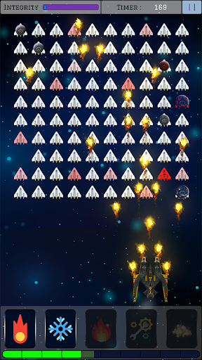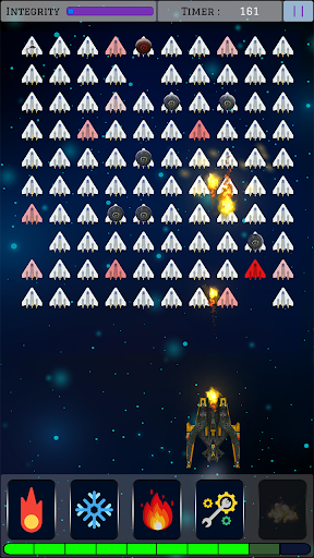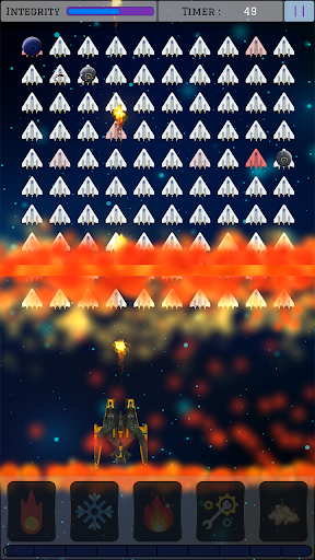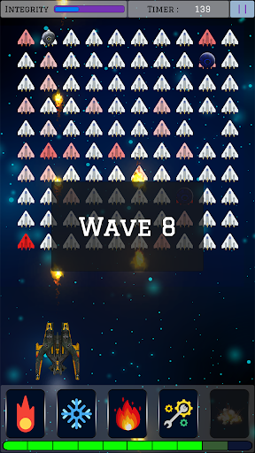 You are hired to make sure extraction drones reaches back at base safely, using the highly advanced "IAD-18", which is galaxy's lethal battleship known. Equipped with multiple blasters, Freeze Explosion and even overloading itself, creating a massive wave of molten plasma, using up all the power core charge in process. power core is what powers the ship's functionalities and arsenal, it keeps generating and storing power for use, make sure to use the stored power efficiently. IAD-18 is capable of being integrated with Alien Upgrade Processors which can be found during battles and then used to upgrade the ship functionalities.